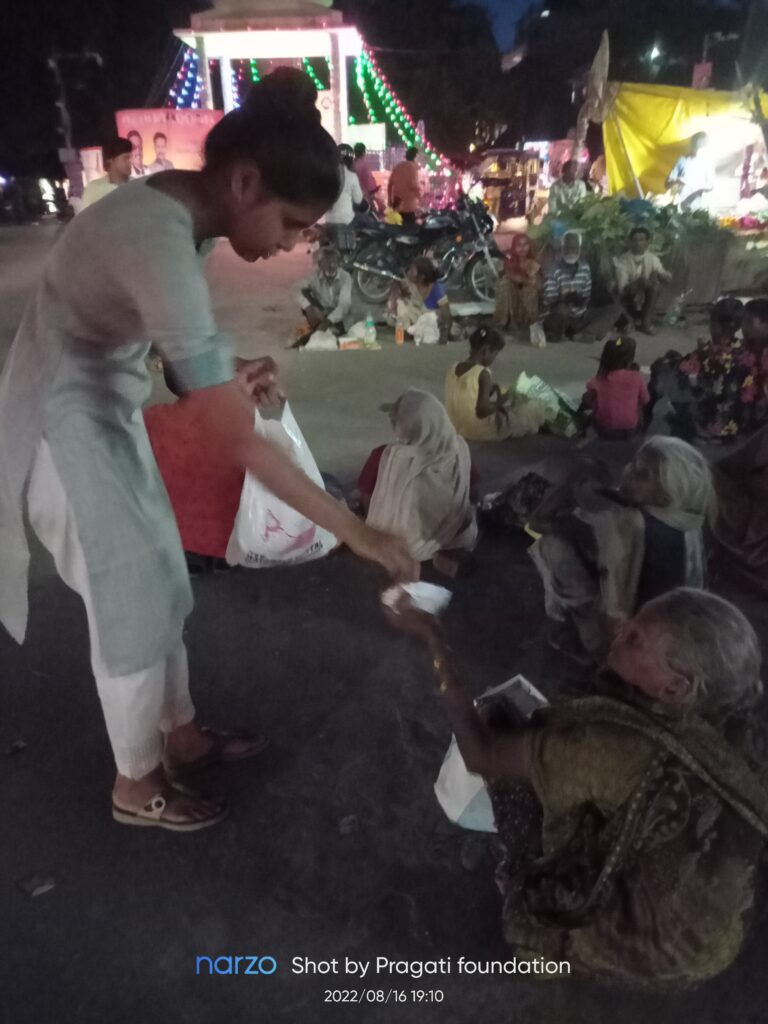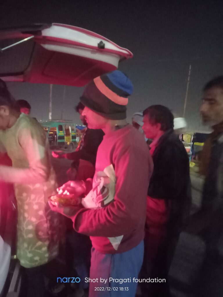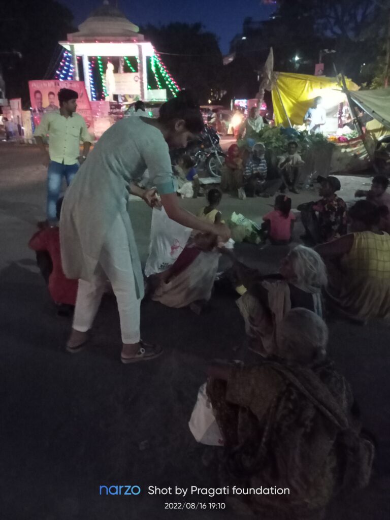 Pragati Foundation organises year- round public feast providing home cooked food to the needy and vulnerable sections of the society especially homeless wanderers and labourer. Every year we feed around 3000+ individuals. We try to ensure no human within our reach sleeps with empty stomach